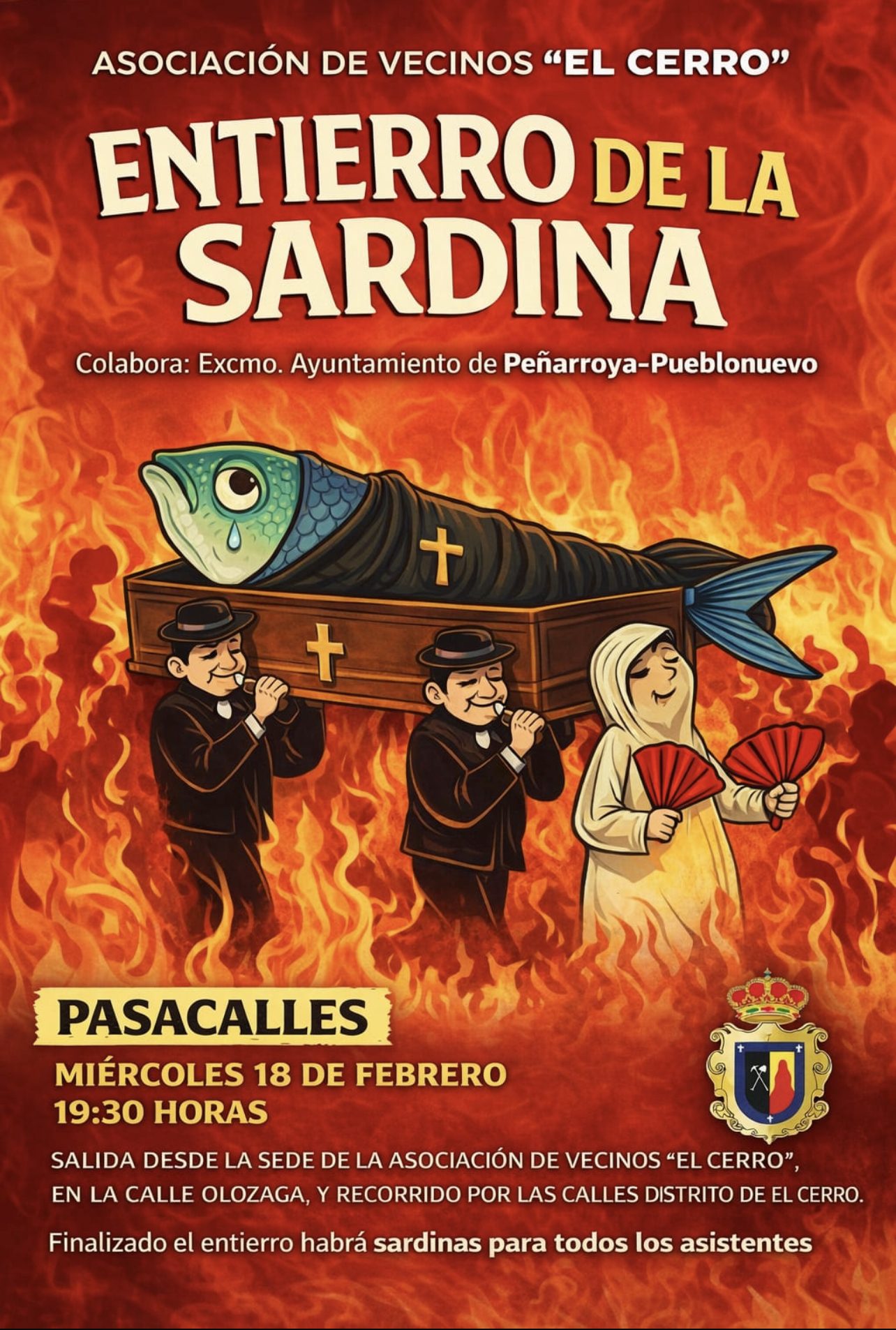 El Ayuntamiento de Peñarroya-Pueblonuevo, en colaboración con la Asociación de Vecinos El Cerro, celebrará el próximo miércoles 18 de febrero una nueva edición del tradicional Entierro de la Sardina, uno de los actos más emblemáticos y esperados del Carnaval en Peñarroya-Pueblonuevo.